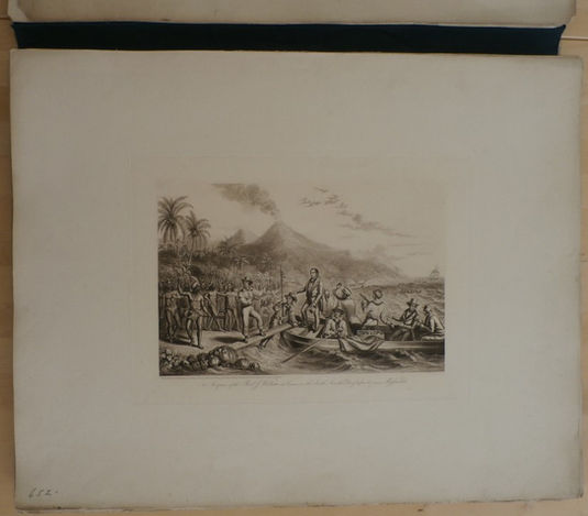 1) The outside cover 2) The title page and inner cover 3) A sample reprint from the Portfolio - The Reception of the Rev John Williams at Tanna 4) A close up showing the plate mark, the pressure of the steel plate pressed inro the paper and the 'orange peel effect' that usually denotes a Mockler reprint